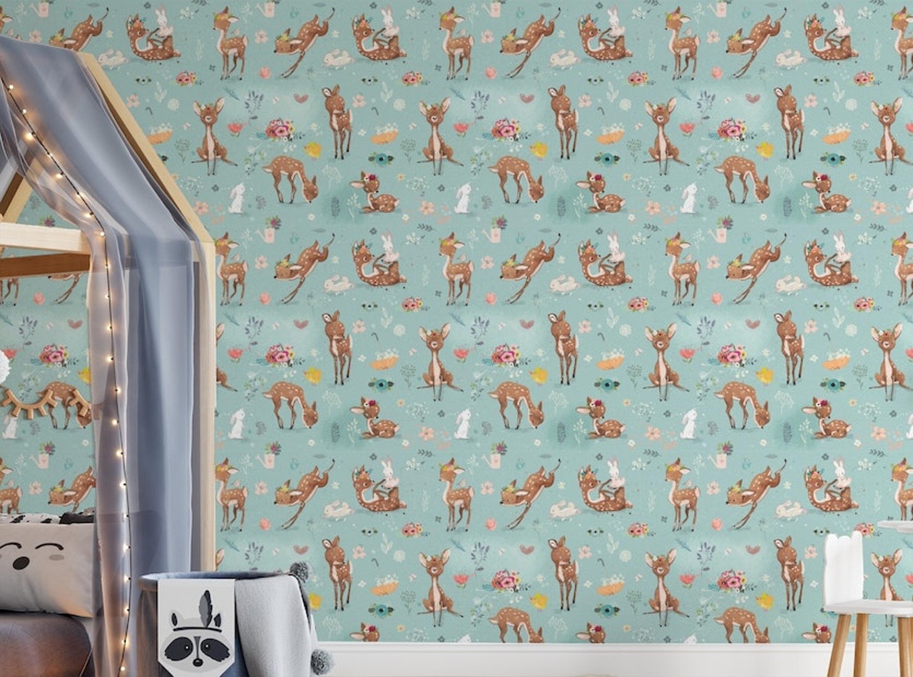 Pour les plus jeunes, privilégier un papier peint doux stimule leur attention sans les surcharger d’informations. Les motifs sobres comme des nuages, des animaux mignons ou des formes arrondies apaisent et éveillent la curiosité. Privilégiez des matériaux sûrs : optez pour du papier peint intissé ou écologique, à encres sans solvants, facile à nettoyer et résistant aux petites mains.